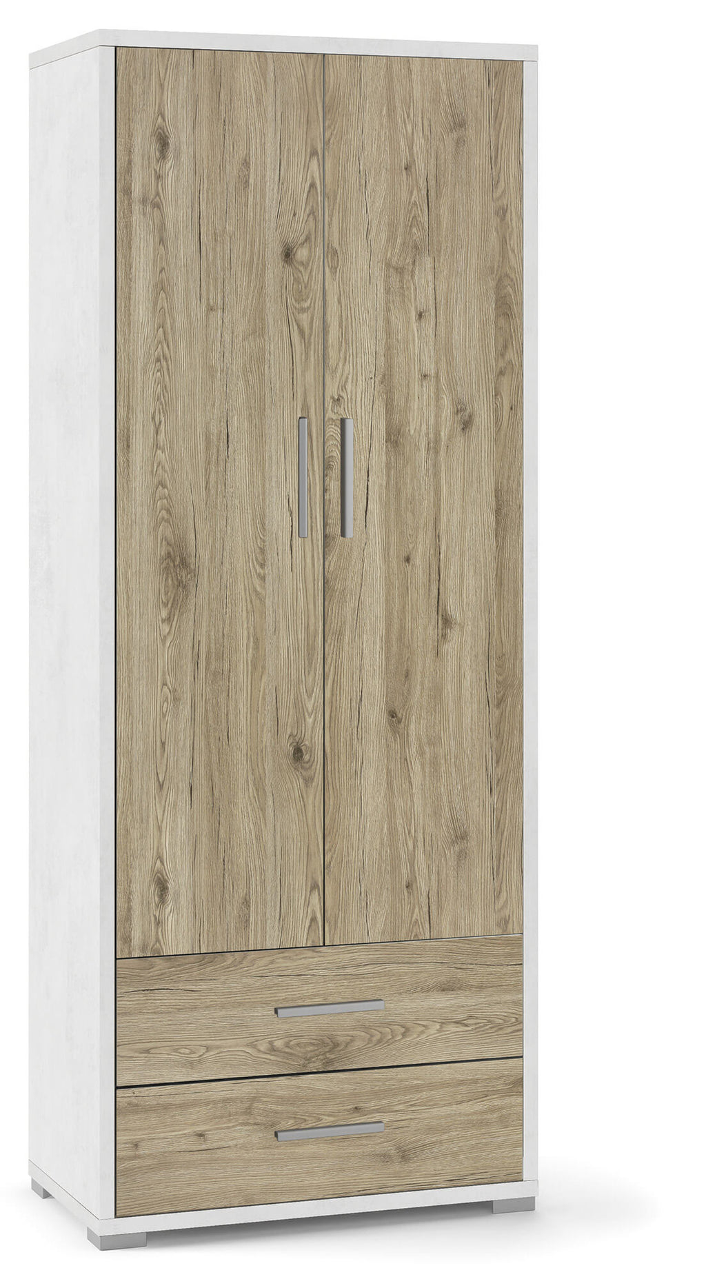 Kleiderschrank 2 Türen 2 Schubladen 71 x 182 x 41 cm Oxidweiß/Eiche natur