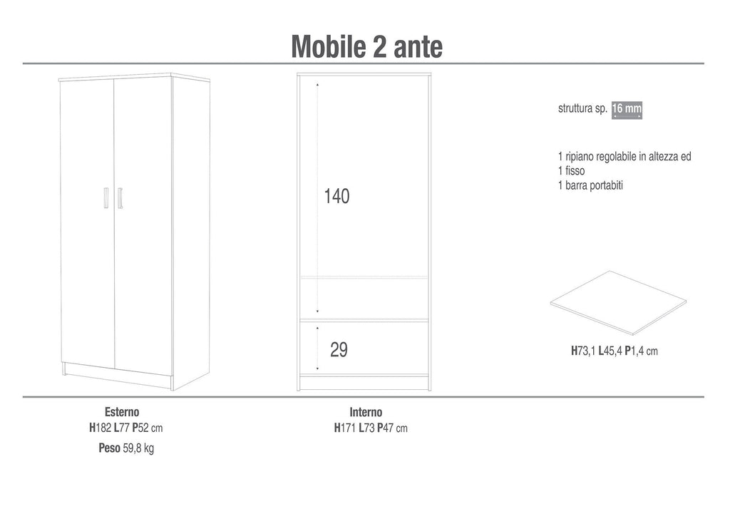 - Enthält 1 Kleiderstange, 1 festen und 1 verstellbaren Einlegeboden