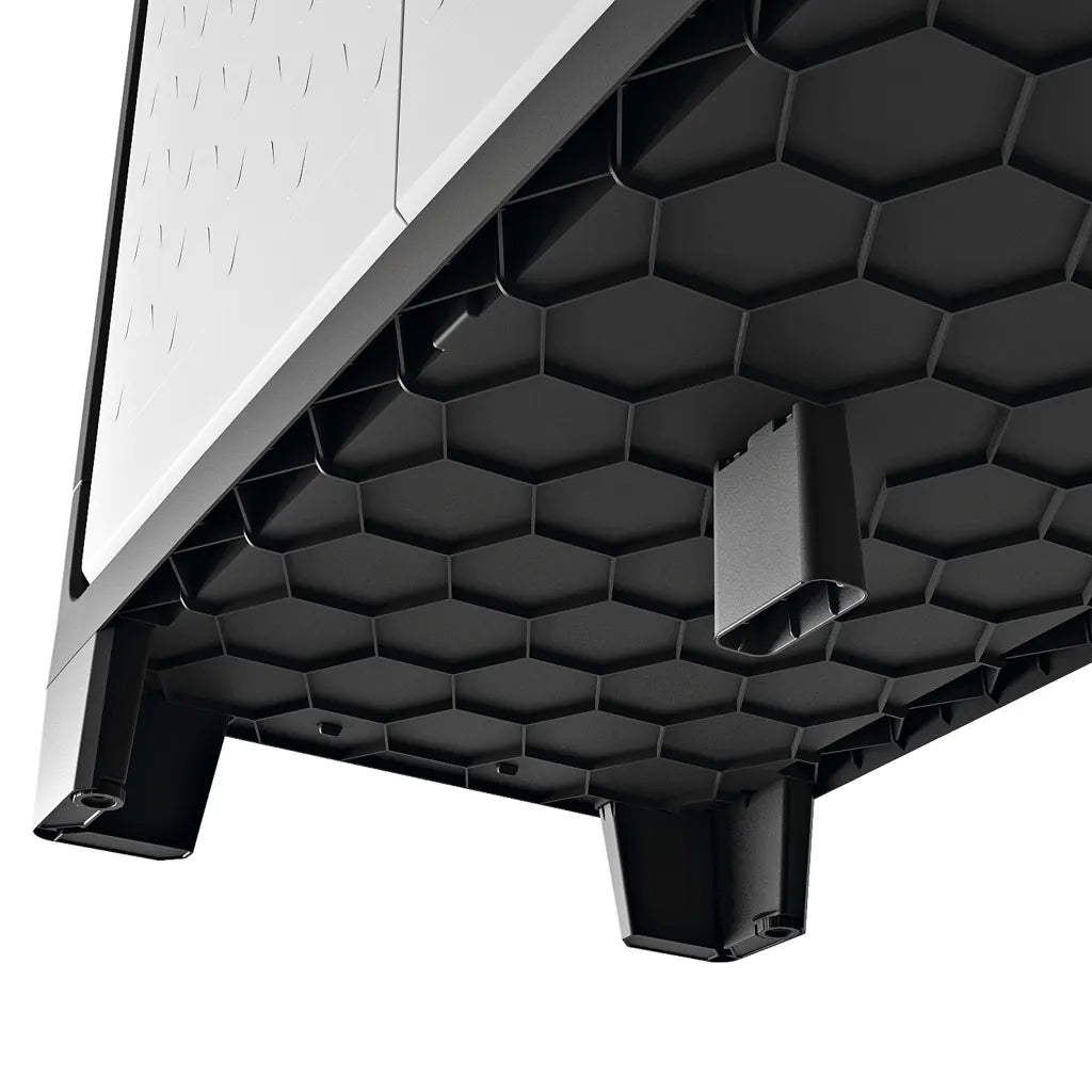 Der Schrank zeichnet sich durch stabile Böden mit einer maximalen Tragfähigkeit von jeweils 30 kg aus. Die Regenfestigkeit, der verstärkte Boden und der Verschluss mit Vorrichtung für ein Vorhängeschloss bieten maximale Sicherheit.