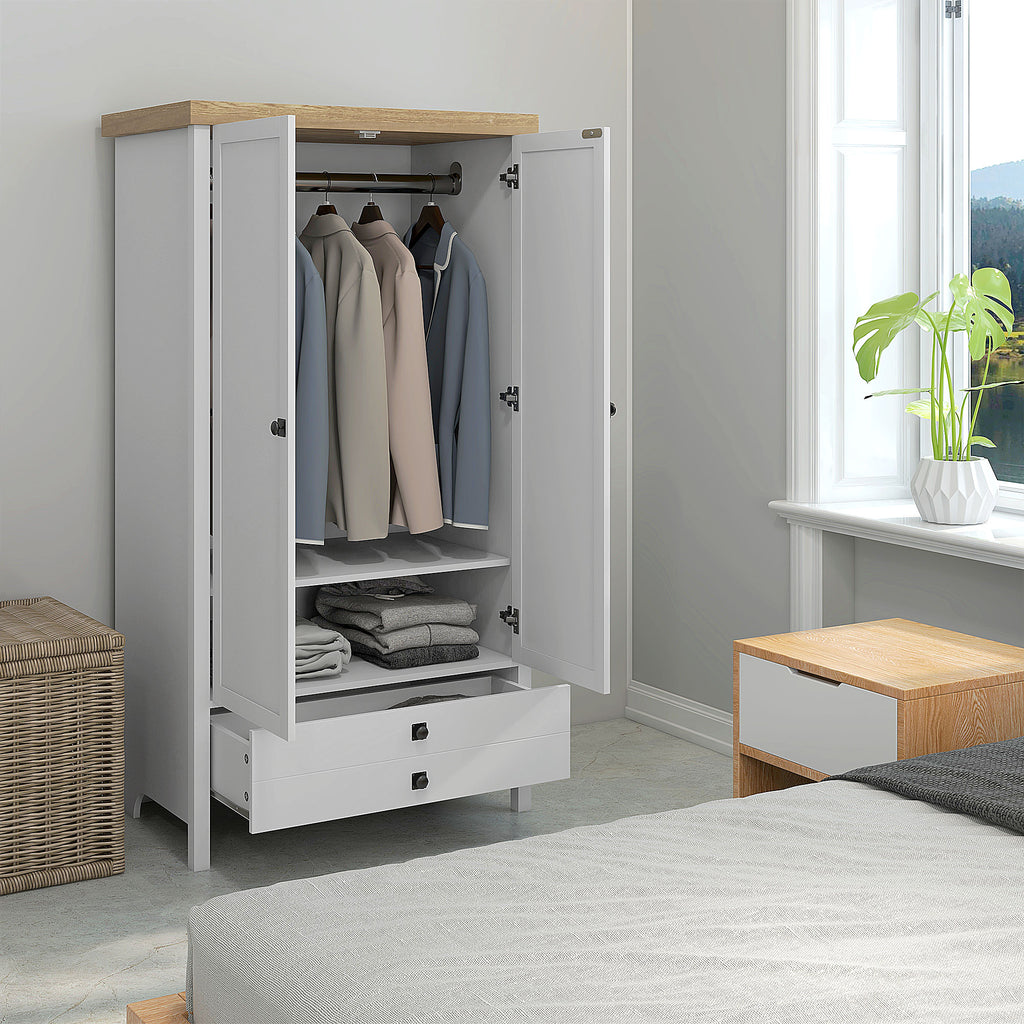 - SPAZIOSO: Il nostro armadio 2 ante contiene una pratica mensola interna e una barra in alluminio, oltre a 2 comodi cassetti inferiori per offrirti tutto lo spazio di cui hai bisogno per tenere in ordine vestiti, cappotti, magliette, ecc.