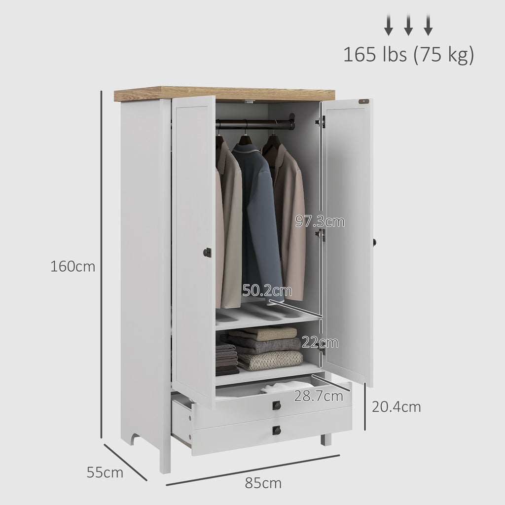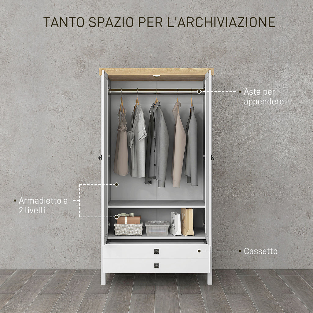 Armadio a 2 Ante con Cassetto Inferiore Barra Appendiabiti e Ripiano 85x55x160 cm Bianco