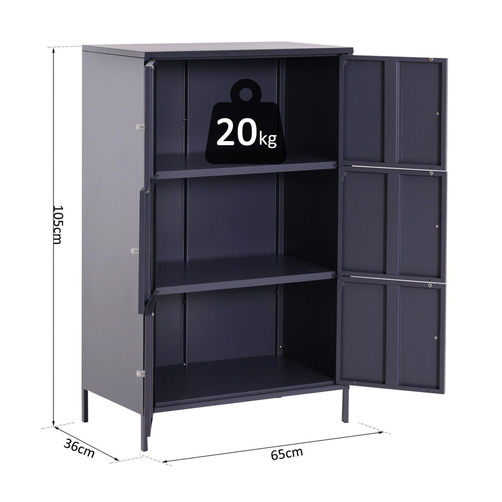 - 3 Einlegeböden, 6 Türen mit Griff zum einfachen Öffnen und Schließen