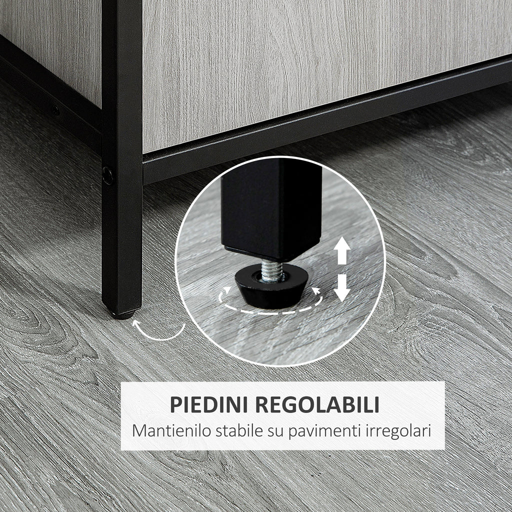 - MODERNER INDUSTRIESTIL: Die grauen Holzmaserungsplatten und der Stahlrahmen verleihen diesem Kleiderschrank einen modernen Look, der die Eleganz des Industriestils neu interpretiert