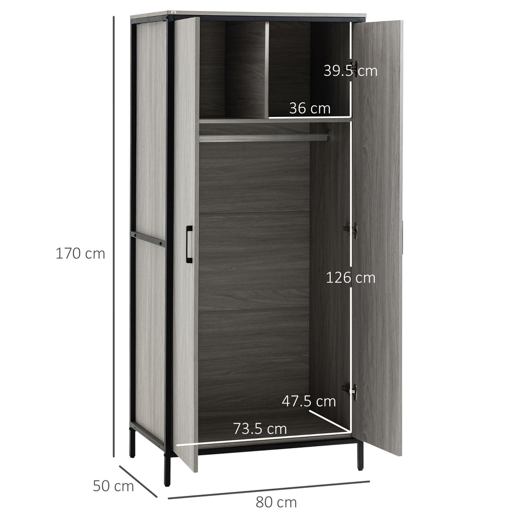 Kleiderschrank 2 Türen 80x50x179 cm aus MDF-Holz und grauem Stahl