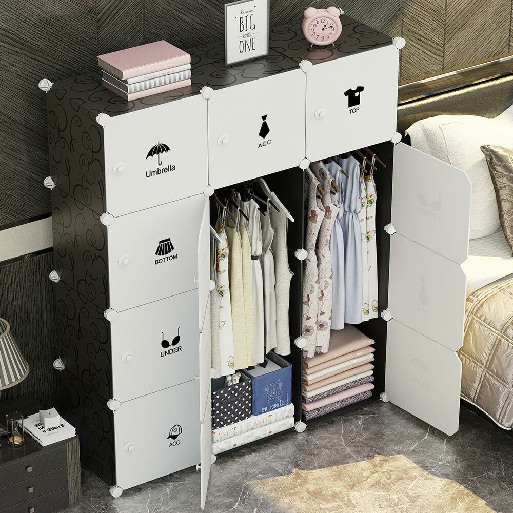 1 x Armadio Guardaroba Modulare 12 Cubi 2 Ante Appendiabiti Mobile Componibile.