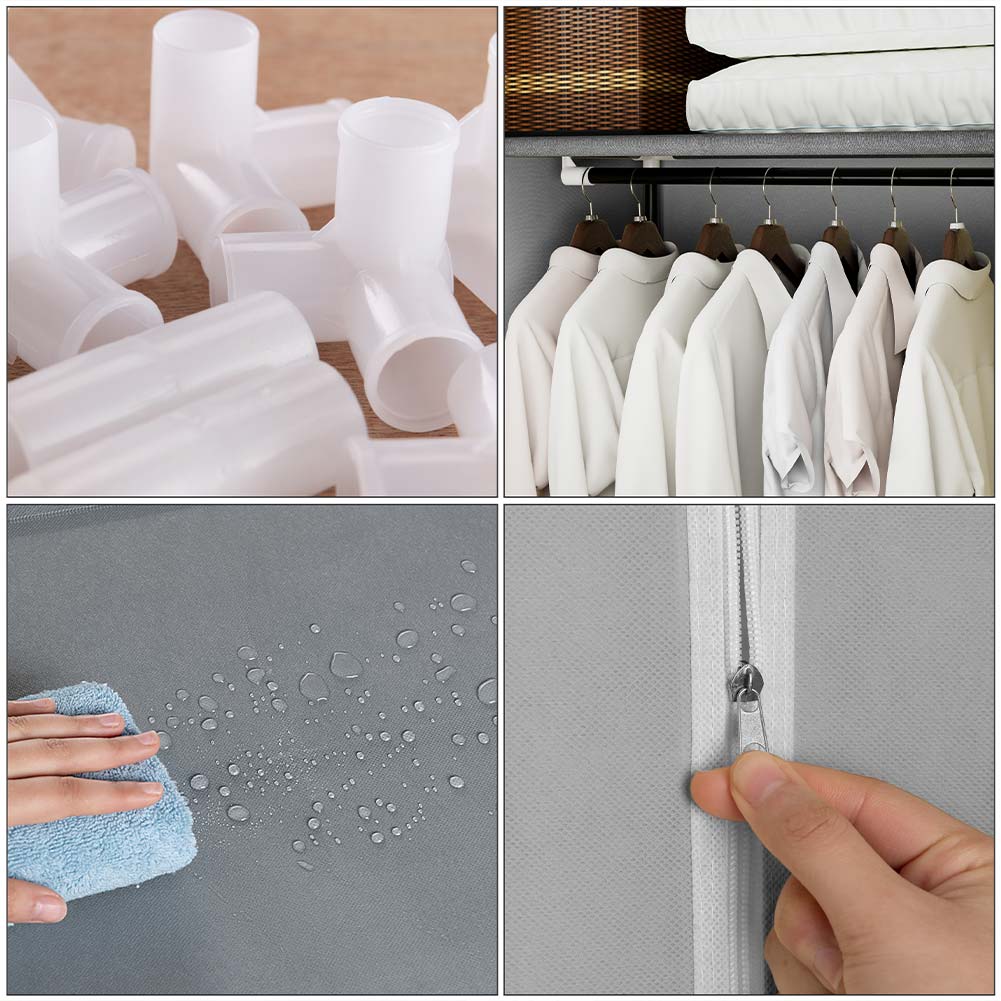 Armadio in tessuto TNT Guardaroba Appendiabiti con ripiano 70x46x160 cm Grigio