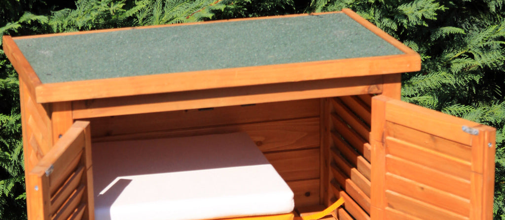 Schrank aus Tannenholz, mit honigfarbenen Imprägniermitteln behandelt, die eine Schutzwirkung gegen Witterungseinflüsse ausüben, hat 1 Innenregal, Doppeltürverschluss komplett mit Magneten, verstellbare Gummifüße und einteiliges Dach mit wasserdichter Hülle für die Einwirkung von UV-Strahlen. Färbung kann oxidieren, daher wird eine regelmäßige Pflege empfohlen, um die Farbe wiederzubeleben. Lieferung in Bausätzen, in Kartons, einschließlich Anleitung und Hardware.