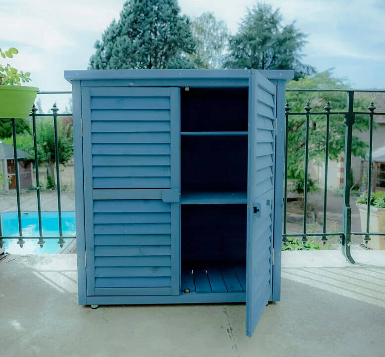 Armadio Porta Attrezzi da Giardino 3 Ripiani 87x47xH95 cm in Legno Cunninghamia lanceolata Blu