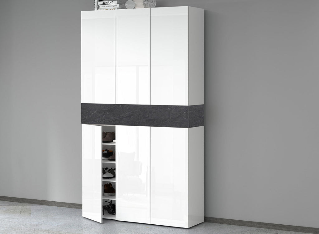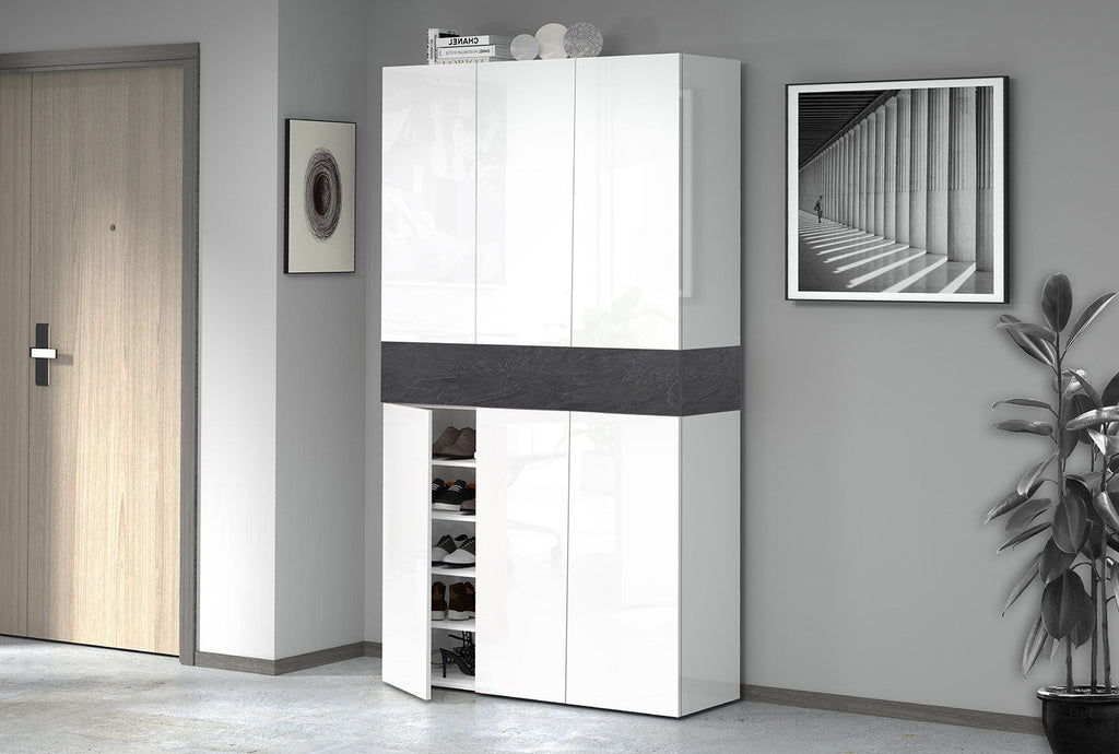Armadio Scarpiera 6 Ante e 1 Ripiano a Ribalta 114x35x200 cm Savona 6A 1R Bianco Opaco/Grigio Ardesia