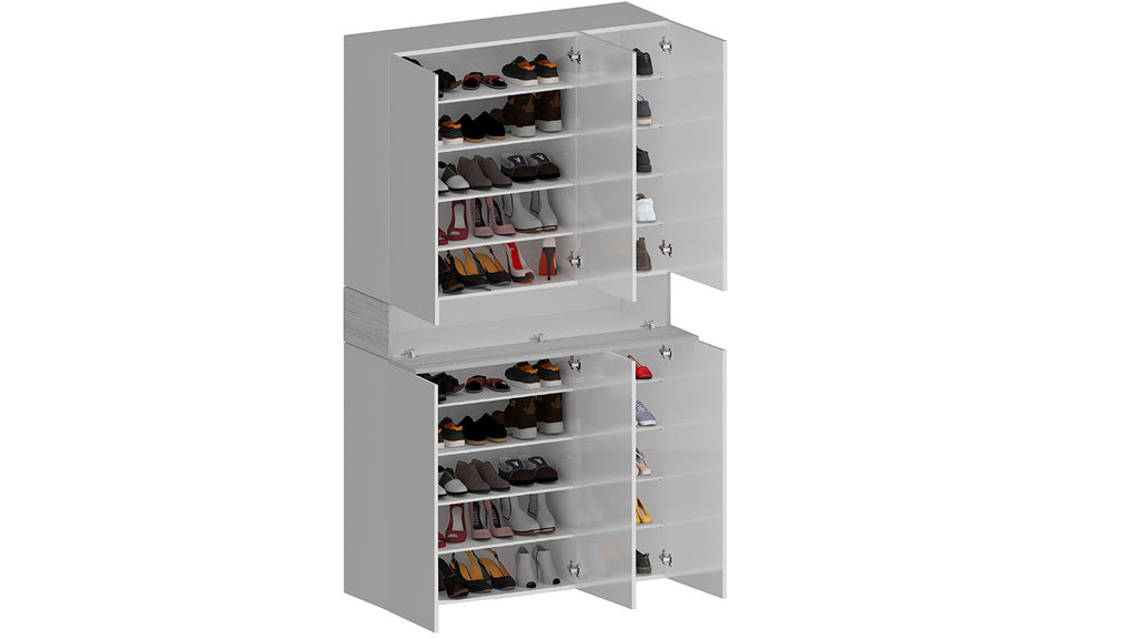Armadio Scarpiera 6 Ante e 1 Ripiano a Ribalta 114x35x200 cm Savona 6A 1R Bianco Opaco/Larice Bianco