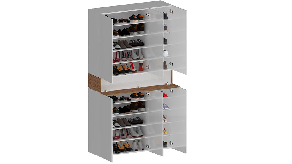 Armadio Scarpiera 6 Ante e 1 Ripiano a Ribalta 114x35x200 cm Savona 6A 1R Bianco Opaco/Rovere Wotan