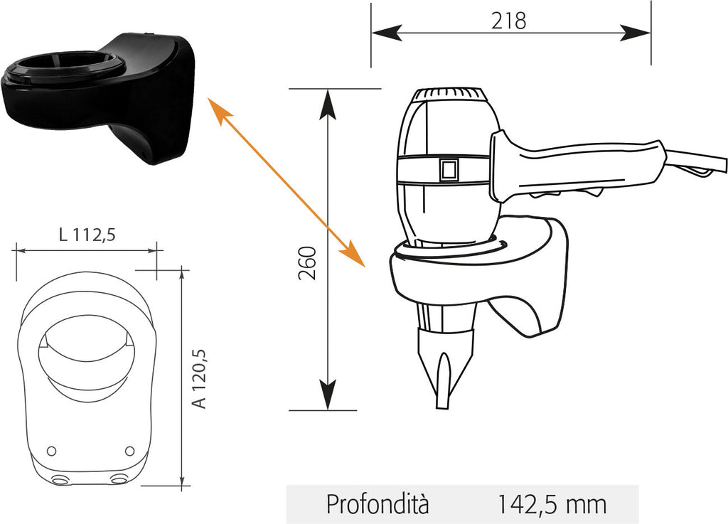 Gebrauch und Wartung in maximaler Sicherheit dank des Sicherheitsthermostats, mit dem der Haartrockner ausgestattet ist, und des Ein-Aus-Schalters am Wandsockel.