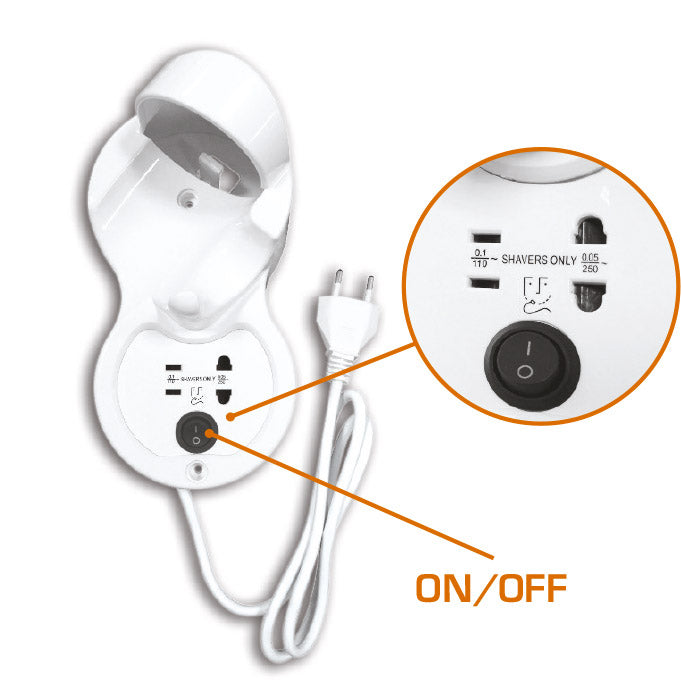 - Elegante Chromoberflächen, Wandsockel aus weißem ABS mit 220/110 V Rasiersteckdose