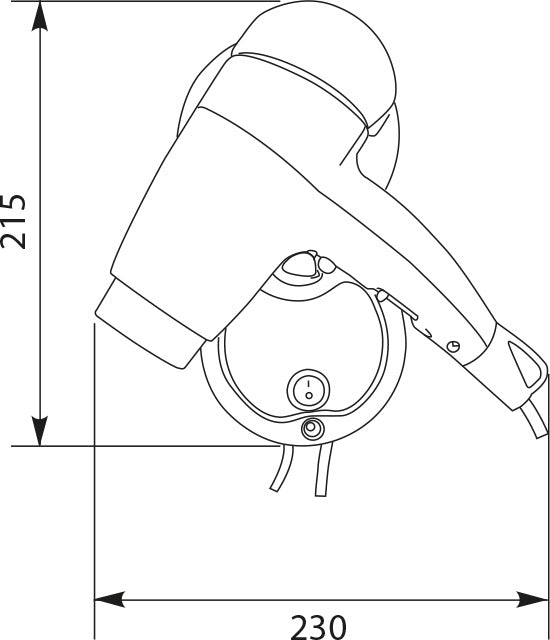 Pistolen-Haartrockner für Hotels und alle Kontexte, die der Gastfreundschaft gewidmet sind (B&B, Residenzen usw.). Bestseller mit extrem kompakten Abmessungen, doppelte Einstellung für Geschwindigkeit und Lufttemperatur. Version mit Wandsockel, ausgestattet mit Rasiersteckdose, mit einem hohen Grad an Feststoff-/Flüssigkeitsschutz (IP21).