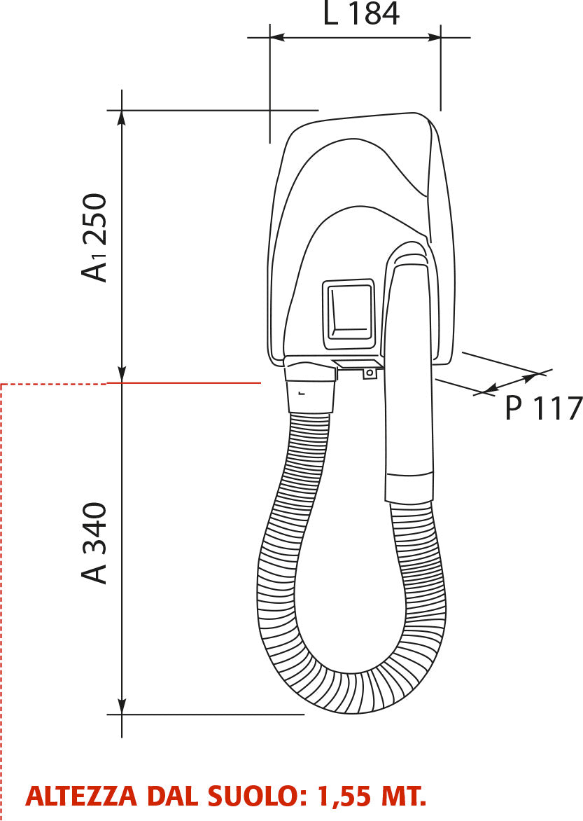 Es ist kein Produkt, das für die Installation in Gemeinschaften oder Umkleideräumen geeignet ist, Umgebungen, in denen eine intensive und kontinuierliche Nutzung Modelle wie STREAM DRY HAIR, ARIEL HAIR und UNIK HAIR oder PRO PHON oder FIT PHON erfordert.