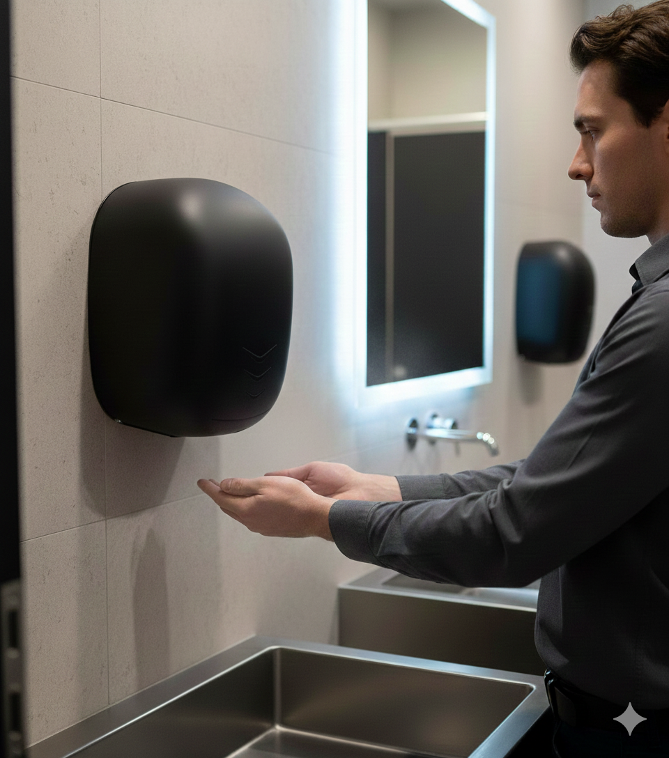 Vama Stream Dry UV Elektrischer Händetrockner mit Fotozelle 1100 W Schwarz geprägter Stahl
