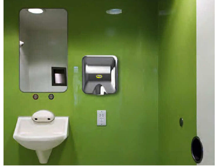 Er ist ein Anti-Vandalismus-Händetrockner und daher für stark frequentierte Bereiche wie Flughäfen und Bahnhöfe geeignet.