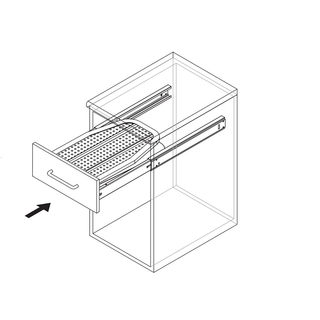 - Erforderliche Innenbreite im Schrank: von 360 mm bis 520 mm.
