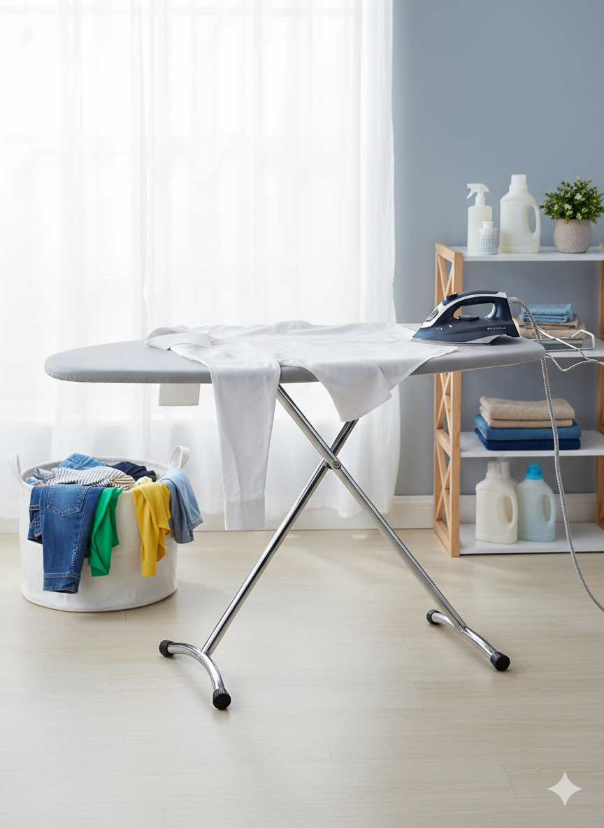 L'Asse da stiro Rugby è un prodotto di alta qualità, fabbricato in Italia per assicurare una lunga durata e performance eccellenti. Questo modello si distingue per il suo piano imbottito che offre una superficie confortevole per stirare, proteggendo i tessuti e facilitando il lavoro. La struttura è realizzata in acciaio cromato con un trattamento speciale anticorrosione, garantendo resistenza e stabilità nel tempo.