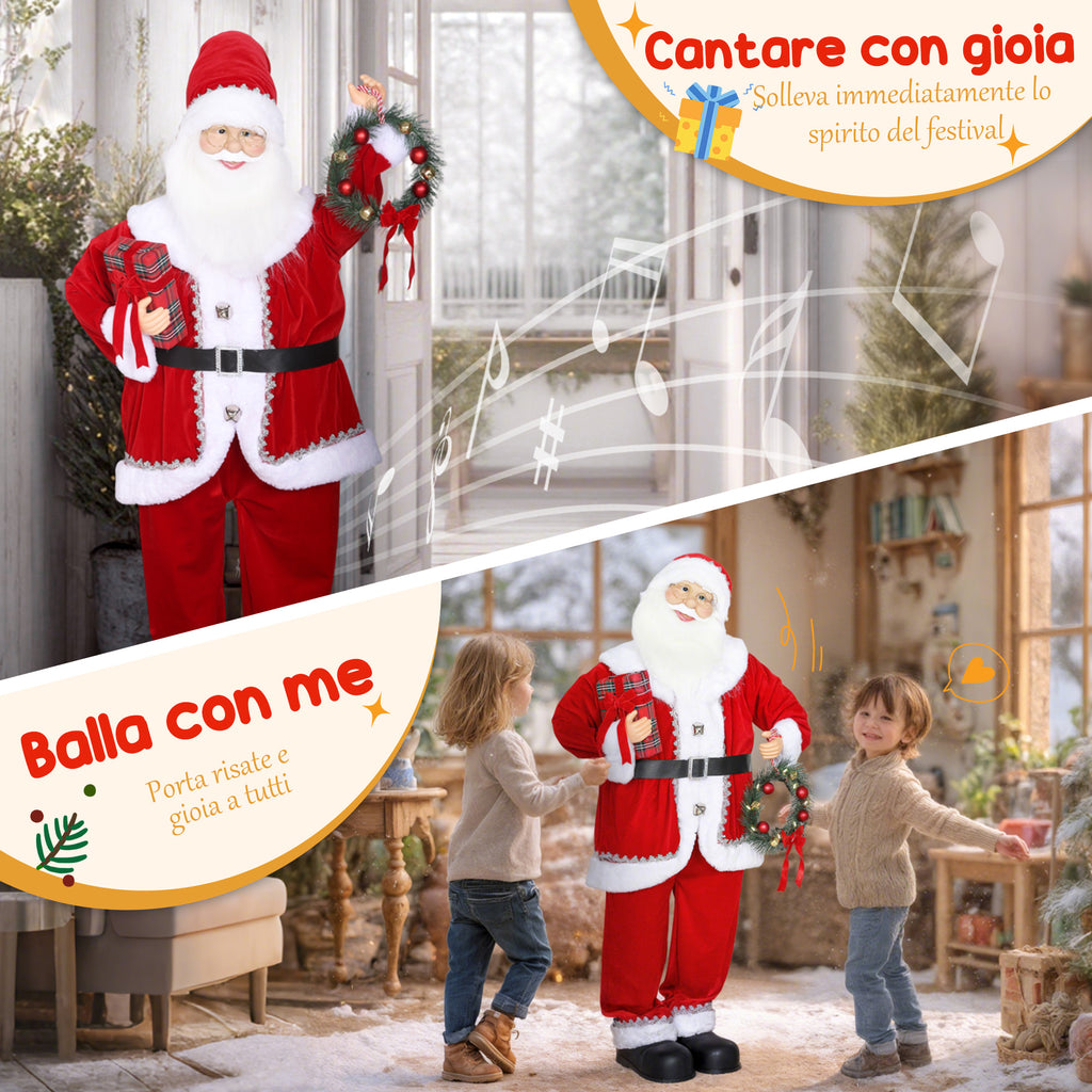 Babbo Natale Animato Alto 120 cm Canta e Balla con Attivazione Sonora Rosso