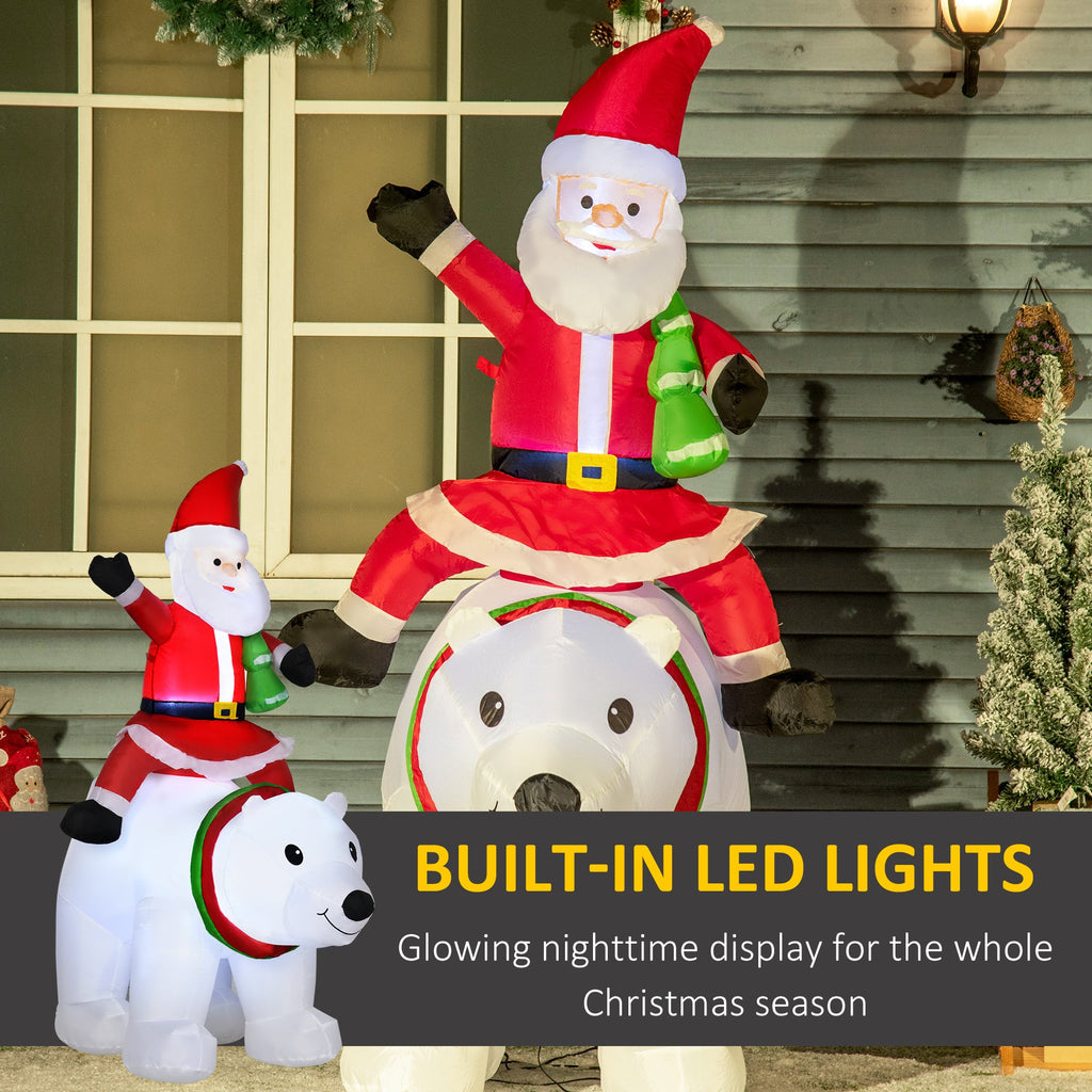 Aufblasbarer Weihnachtsmann mit Eisbär 130x80x180 cm mit LED-Leuchten für drinnen und draußen