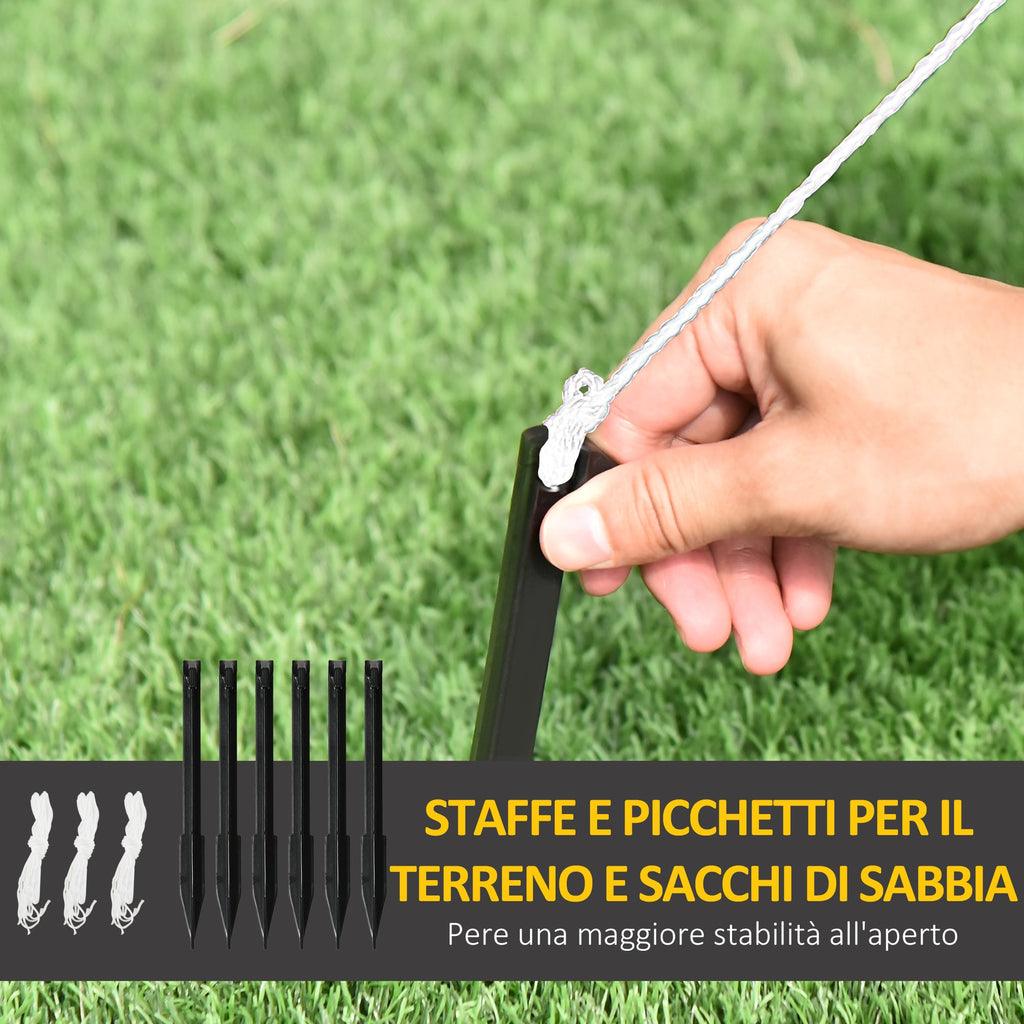 - 6 Heringe, 3 Seile und 2 Sandsäcke für Stabilität