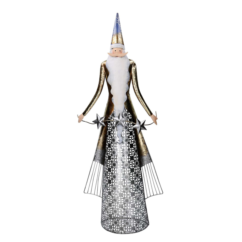 Babbo natale in metallo con stelle argento e oro cm 30,5x10,8xh76,2