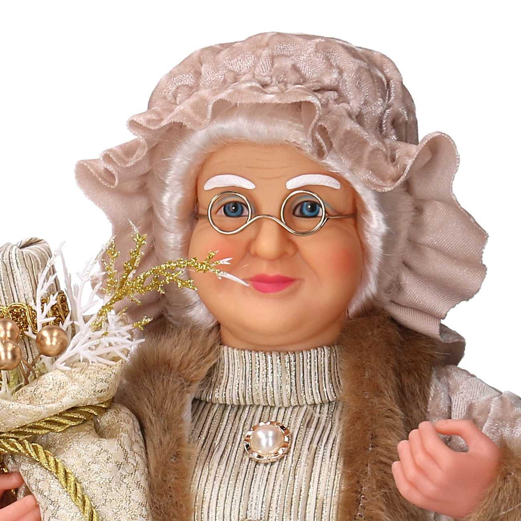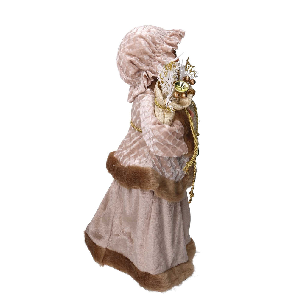 Babbo natale in tessuto signora con lanterna oro cm xh45