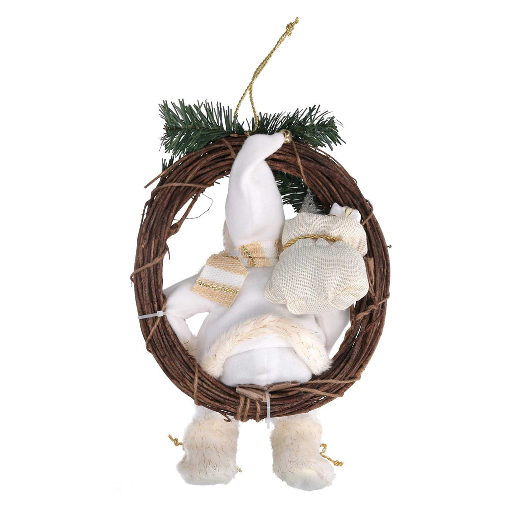 Babbo natale in tessuto su ghirlanda bianco e oro cm xh32/49