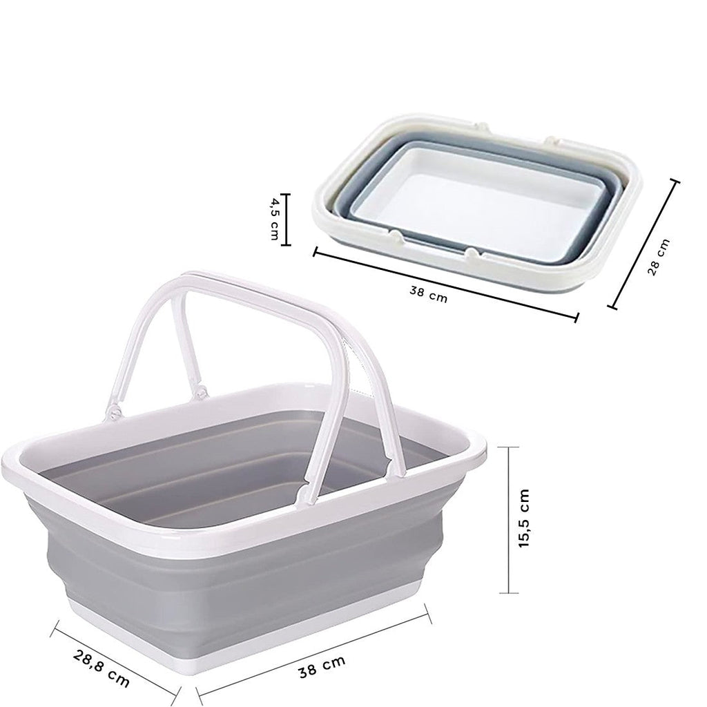Zusammenklappbares, platzsparendes Mehrzweck-Behälterbecken mit 9 Liter Fassungsvermögen und grauen Griffen