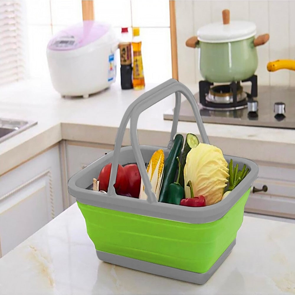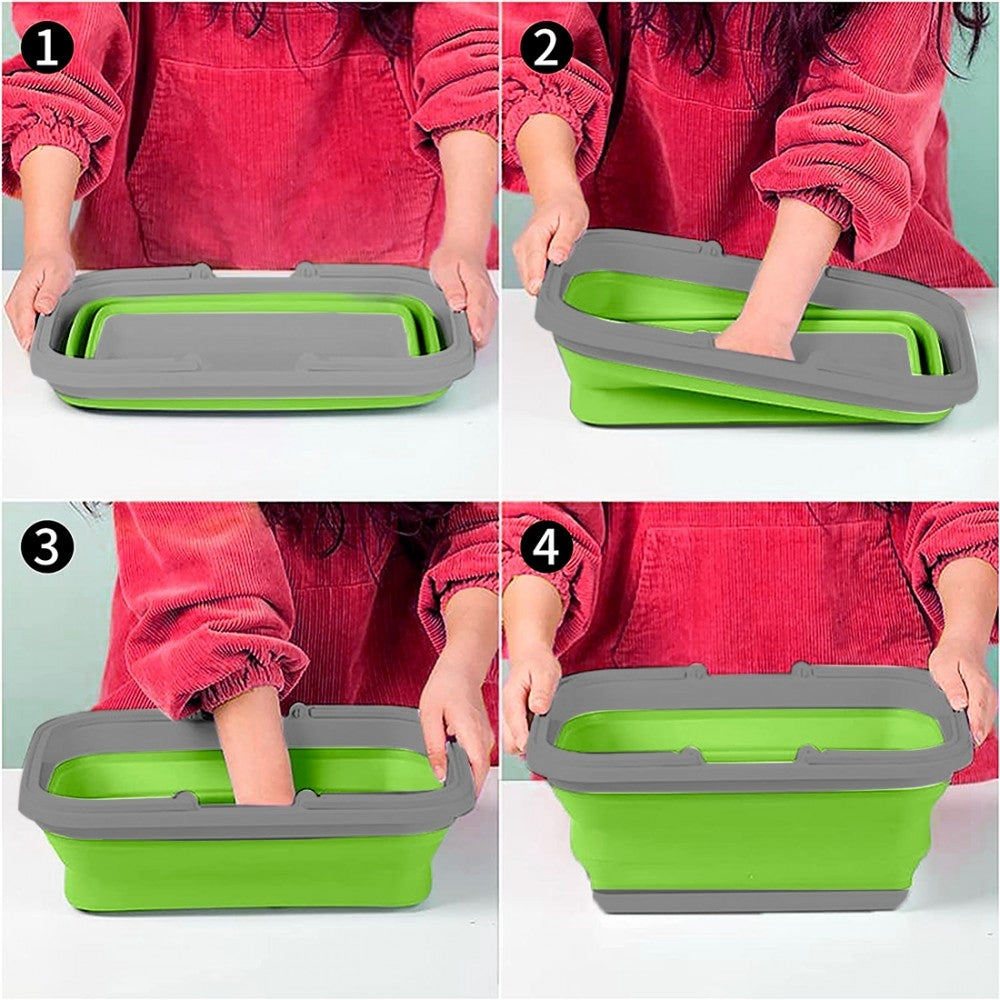 Platzsparendes Behälterbecken 9 Liter, zusammenklappbar, Mehrzweck, mit Griffen, grün