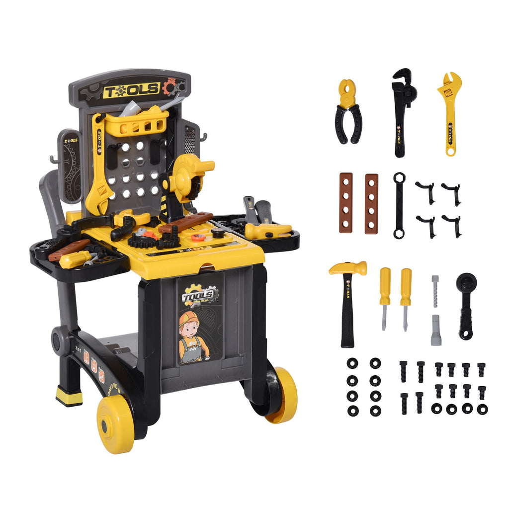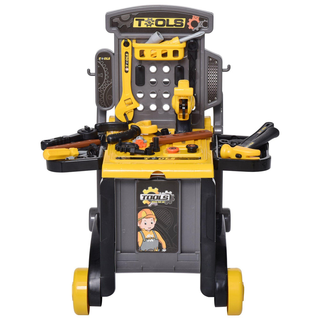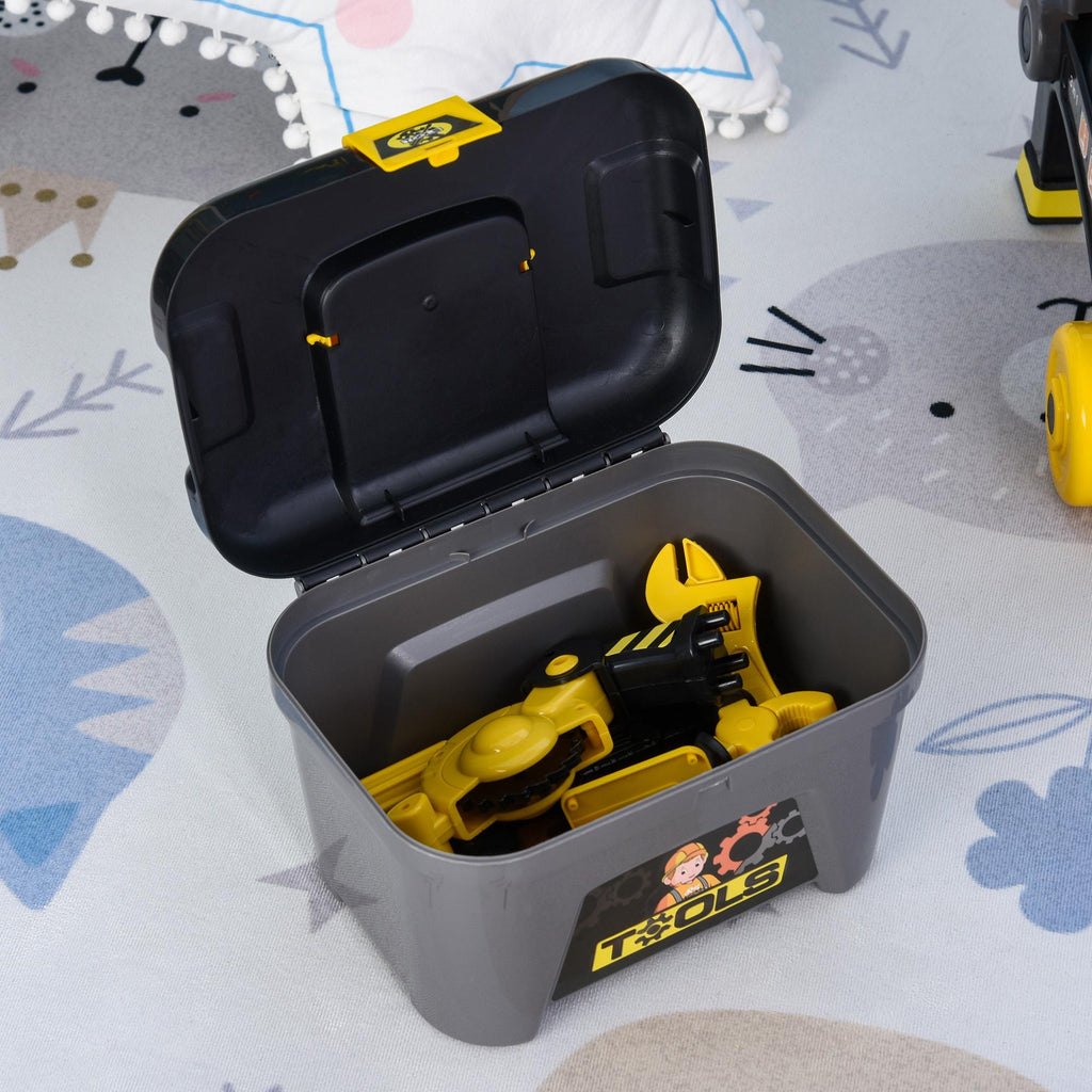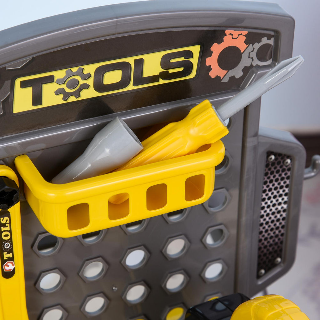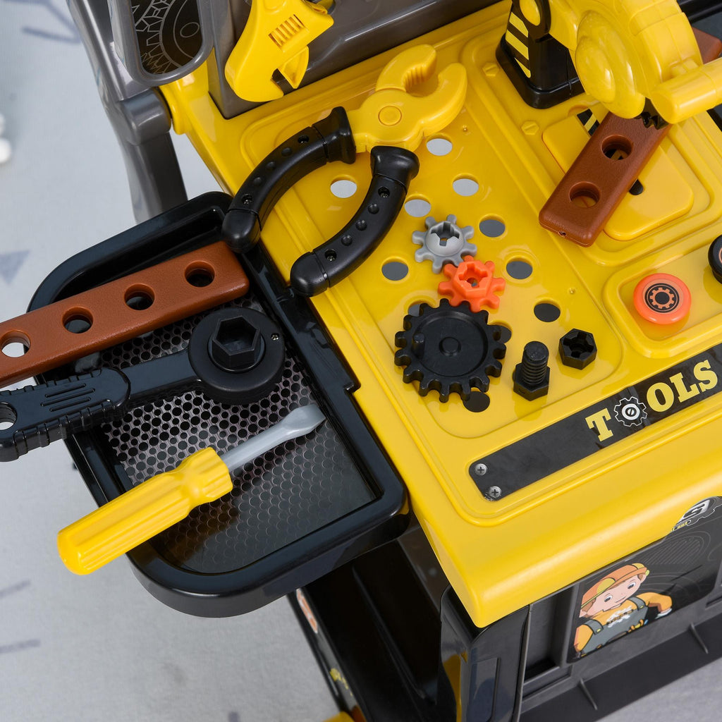 Werkbank mit 60 gelben und schwarzen Kinderwerkzeugen