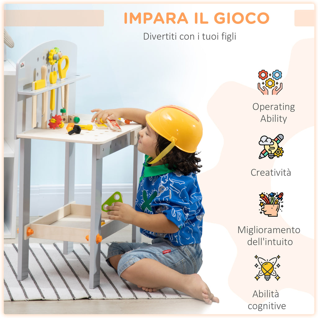 Spielzeug-Werkbank mit 31 Zubehörteilen 53 x 31 x 77 cm in grauem Holz