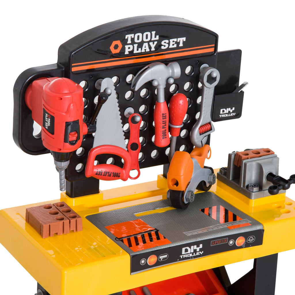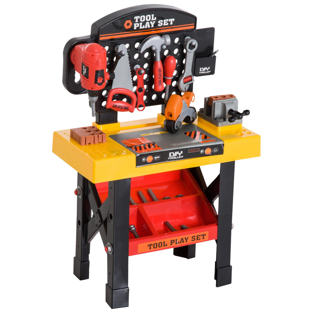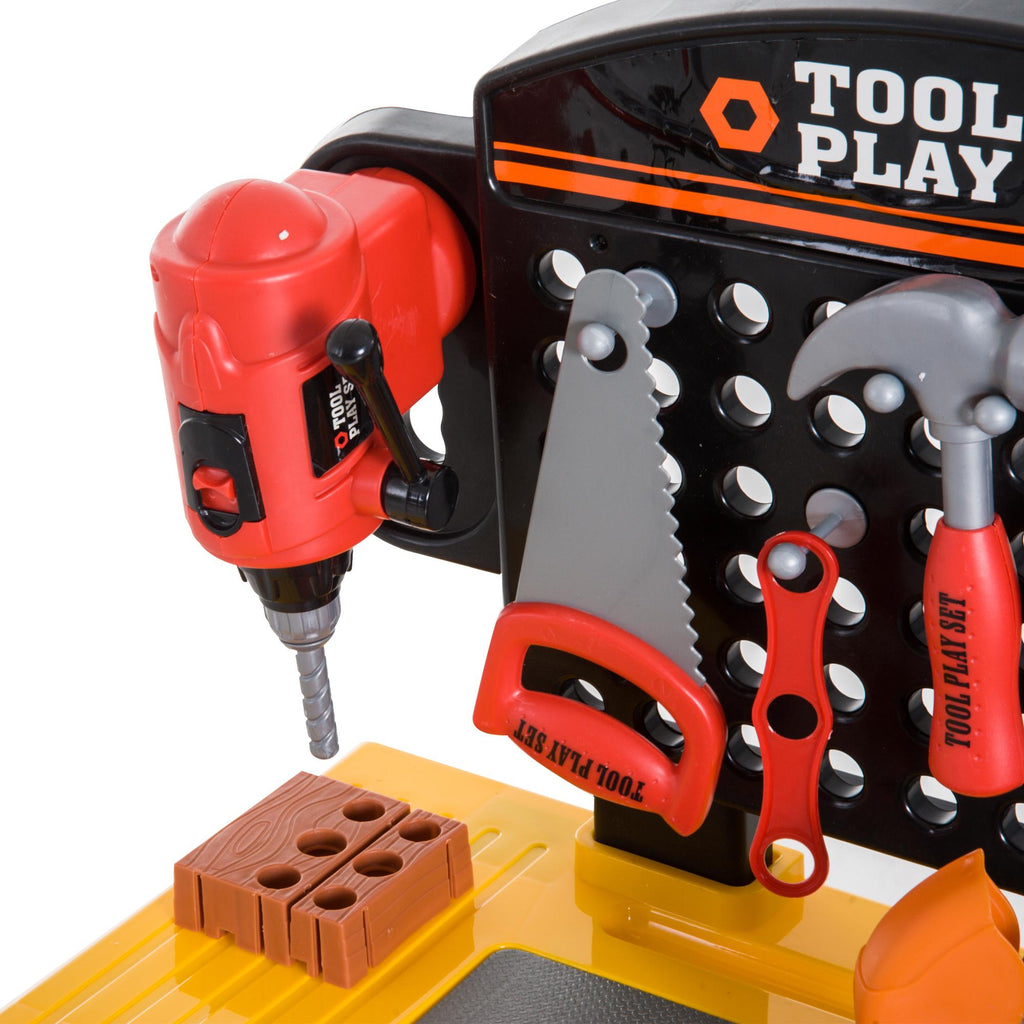 Gelbe und schwarze Spielzeugwerkstatt-Werkbank