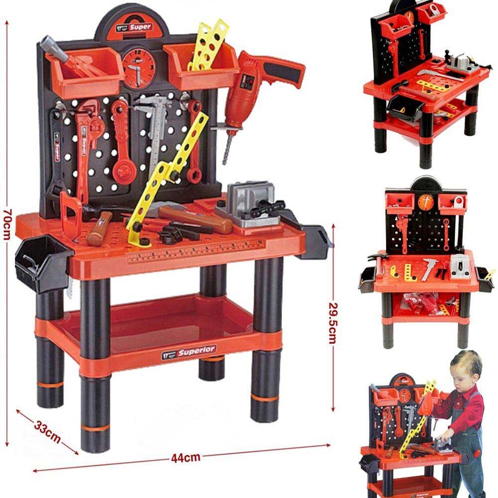 1 x Banco da Lavoro per Bambini 54 Pezzi Attrezzi e Accessori con Trapano Giocattolo