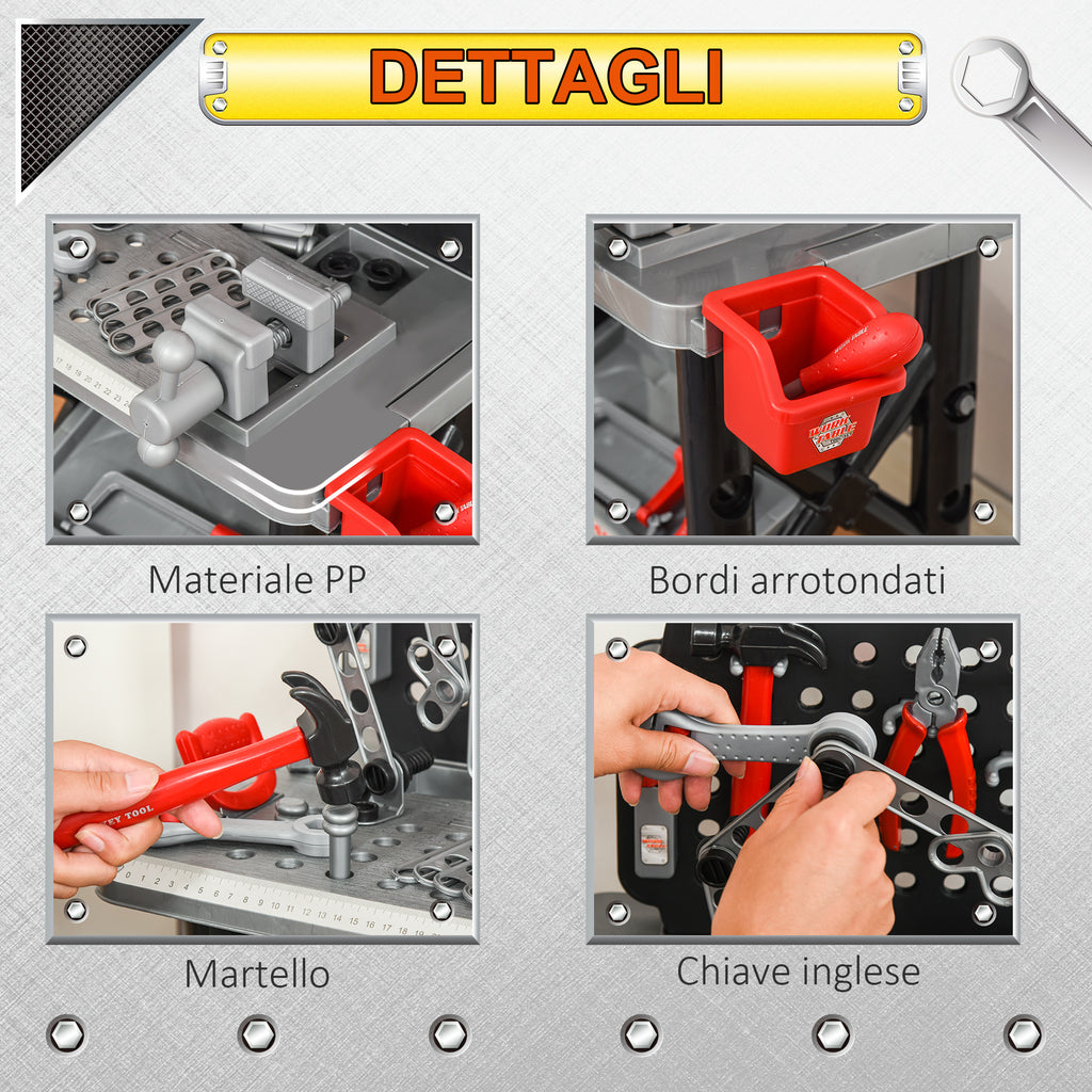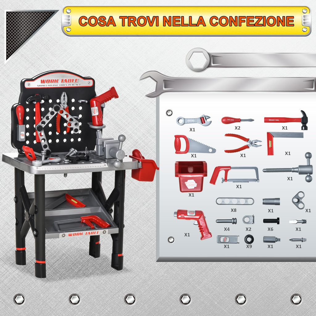 Werkbank mit 50 schwarzen und grauen Kinderwerkzeugen