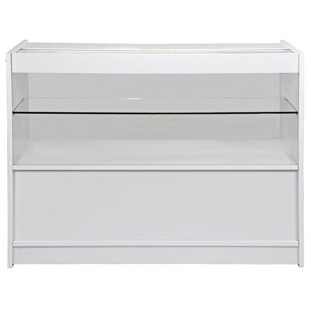 Bancone Espositore C1200 120x60x90 cm per Negozio con Vetrina e Ripiani Bianco Brillante