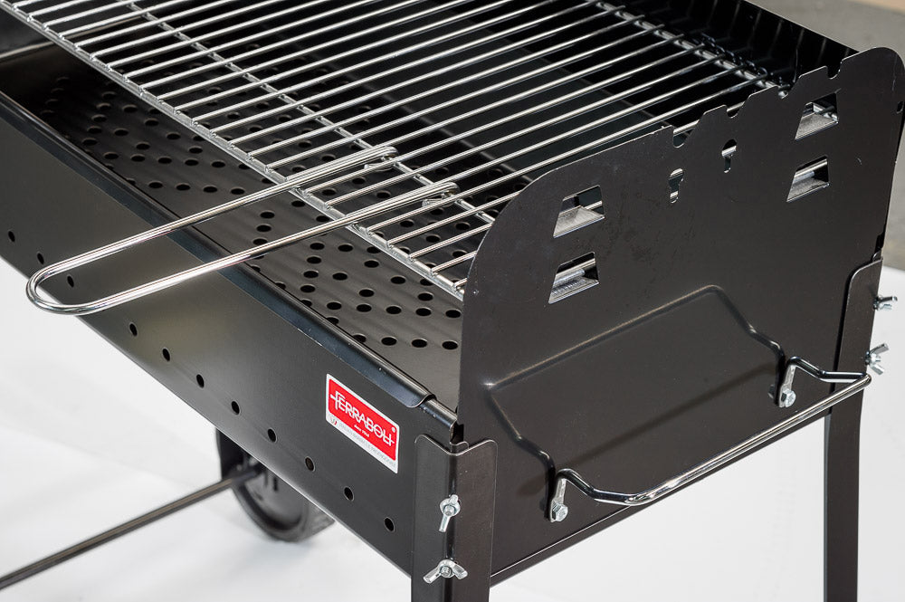 Maggiore ist mit einem sehr großen verchromten Grillrost für Lebensmittel ausgestattet, der 75×37 cm misst und weithin durch Windschutz-Seitenwände an drei Seiten geschützt ist, die gleichzeitig die Funktion der Stütze und Positionierung auf drei Höhen erfüllen. Der Bbq hat sicherlich eine einfache Struktur, die Qualität und Preis sehr gut kombiniert. Die Montage der Beine ist einfach, wirken Sie einfach auf die einzelnen Flügelmuttern, die die Befestigungsschrauben blockieren, alles für maximale Stabilität.