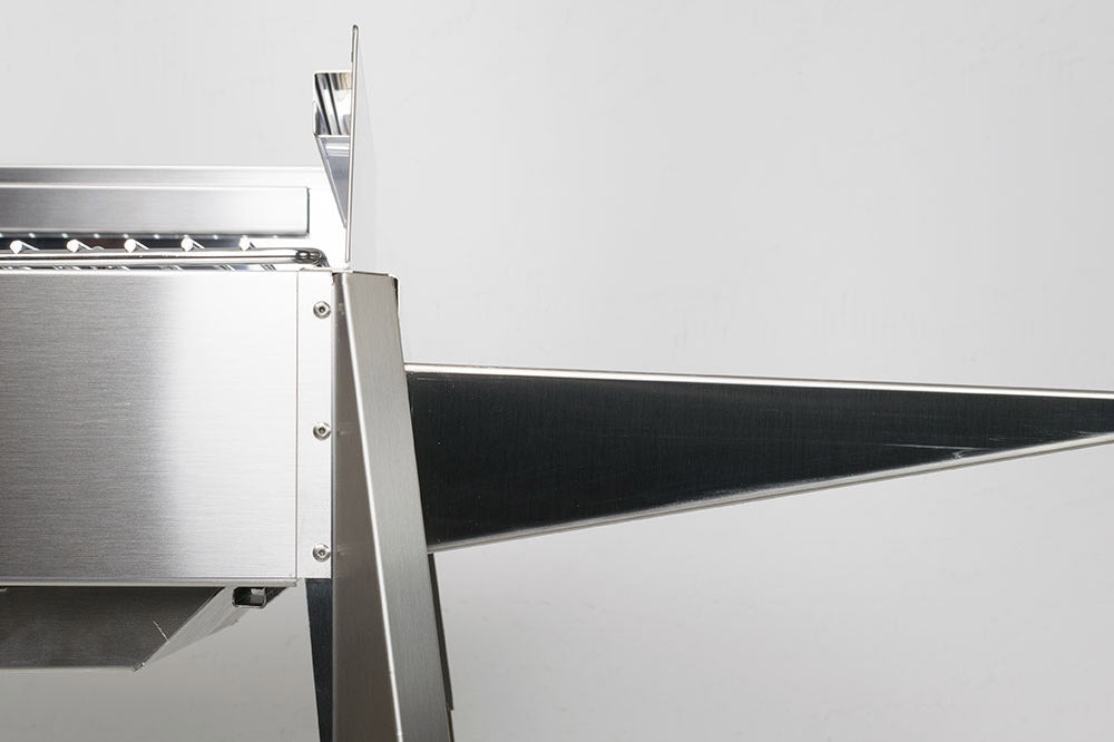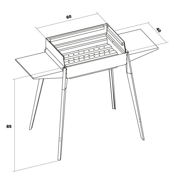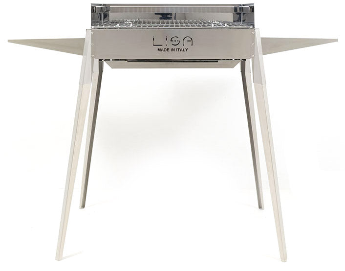 Der professionelle Grill wird durch zwei große abnehmbare Seitenablagen vervollständigt, die nützlich sind, um Zutaten oder Zubehör für das Kochen griffbereit zu haben. Das innovative doppelwandige Design schafft einen Hohlraum, in dem die Luft durch die Belüftungslöcher zirkulieren kann, was die Zufuhr der Glut unterstützt. Der originale Bajonettverschluss erleichtert die Montage der Füße ohne Werkzeug und Kraftaufwand, wodurch der Grill trotz seiner Größe leicht zu transportieren und platzsparend zu verstauen ist. Darüber hinaus ermöglicht die Möglichkeit, die Füße einfach zu entfernen, den Einsatz an Mauerwerkskonstruktionen im Garten oder an der Saugeinheit für Tavernen oder Innenräume. Widerstandsfähig und langlebig, dank der Eigenschaften von Edelstahl AISI 430 widersteht der Grill Etna lange Zeit Rost. Tatsächlich macht diese Eigenschaft es perfekt für den Einsatz im Freien, im Garten.
