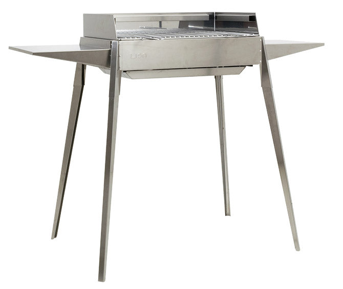 Holzkohlegrill, der sich durch ein raffiniertes und elegantes Design sowie durch die einfache Montage und Demontage dank der charakteristischen Füße mit Bajonettverschluss auszeichnet.