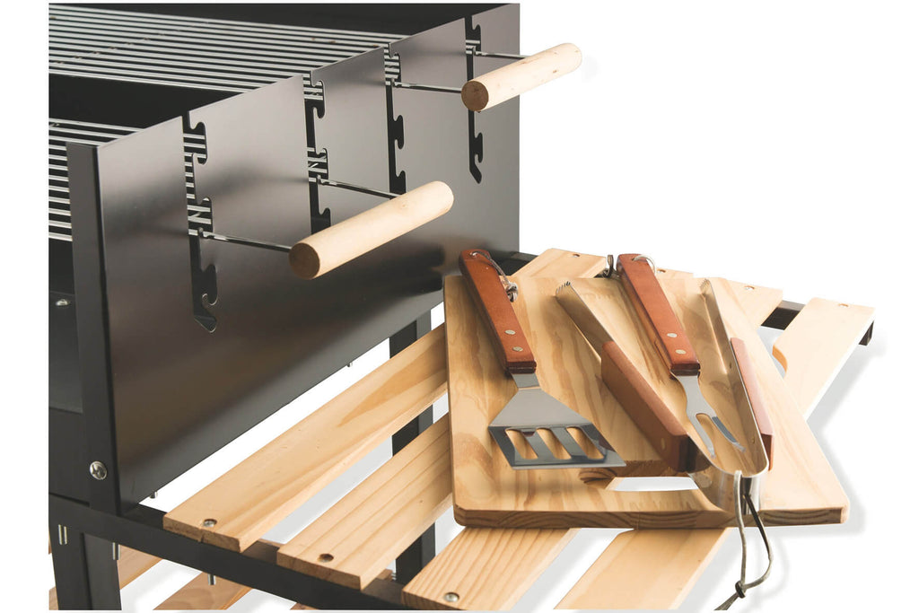 Warum Sonntag wählen? Denn mit ihm grillen Sie ganz bequem. Wenn die Tage länger werden, wird die Glut zum unbestrittenen Star der Abende im Freien. Sun-day ist zu transportieren und zu montieren, ausgestattet mit zwei Grills, wird es Sie in jeder Art von Küche zufriedenstellen. Kleines Geheimnis Um den Grill in optimalem Zustand zu halten, reinigen Sie ihn nach jedem Gebrauch: Ein vernachlässigter Grill kann den Geschmack der Speisen verändern.