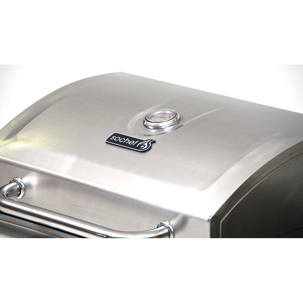 - Deckel und Armaturenbrett aus Edelstahl, Temperaturanzeige.