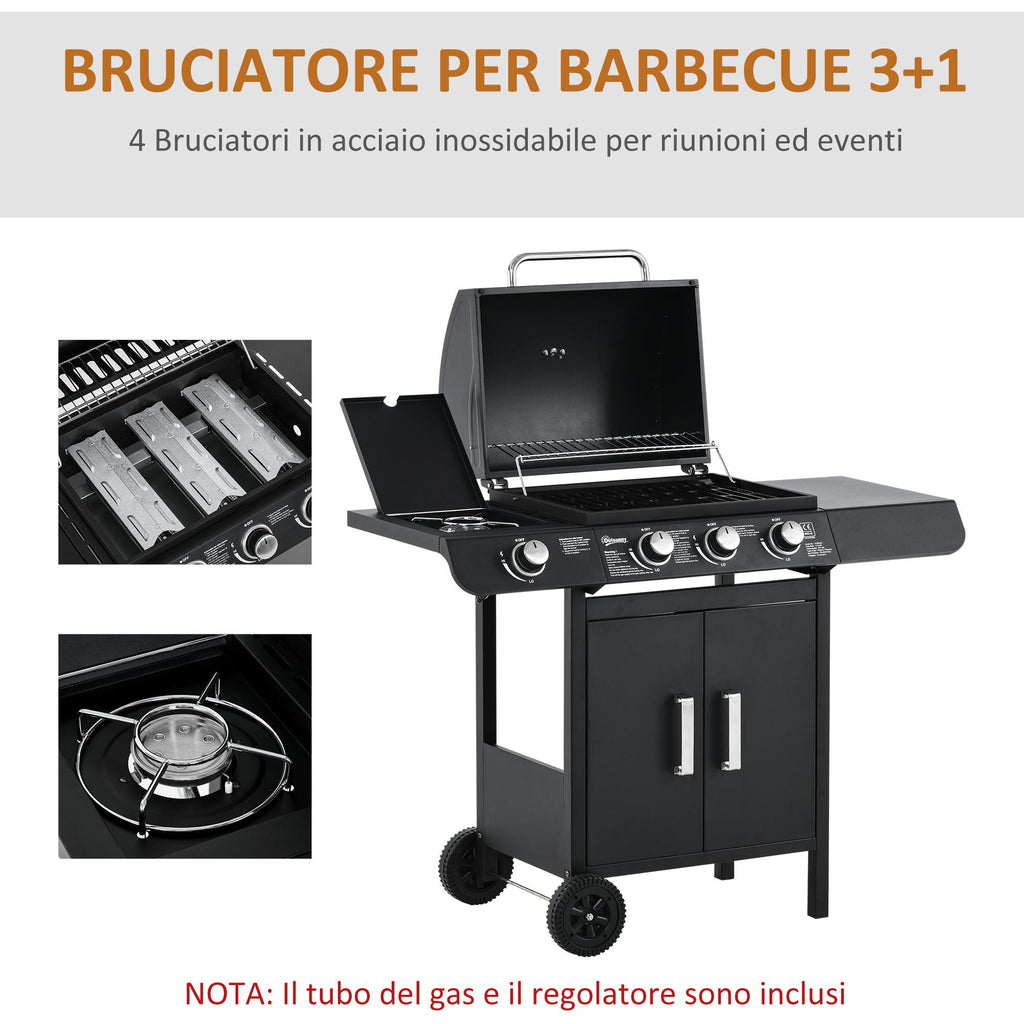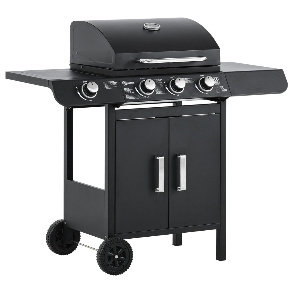4-Flammen-Gasgrill 110 x 50 x 100 cm aus schwarzem Metall