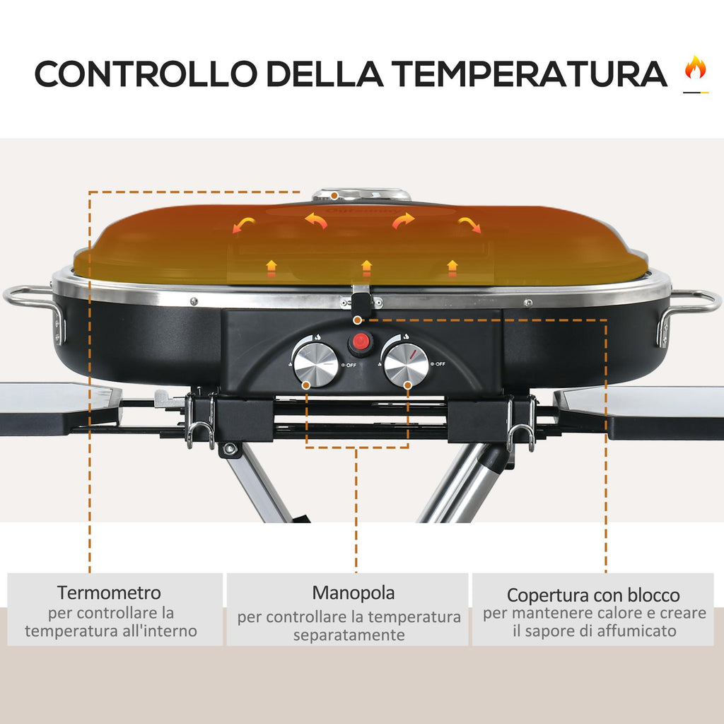 LPG-Gasgrill 2 Brenner 100 x 41,6 x 82,5 aus Aluminiumlegierung und schwarzem Stahl