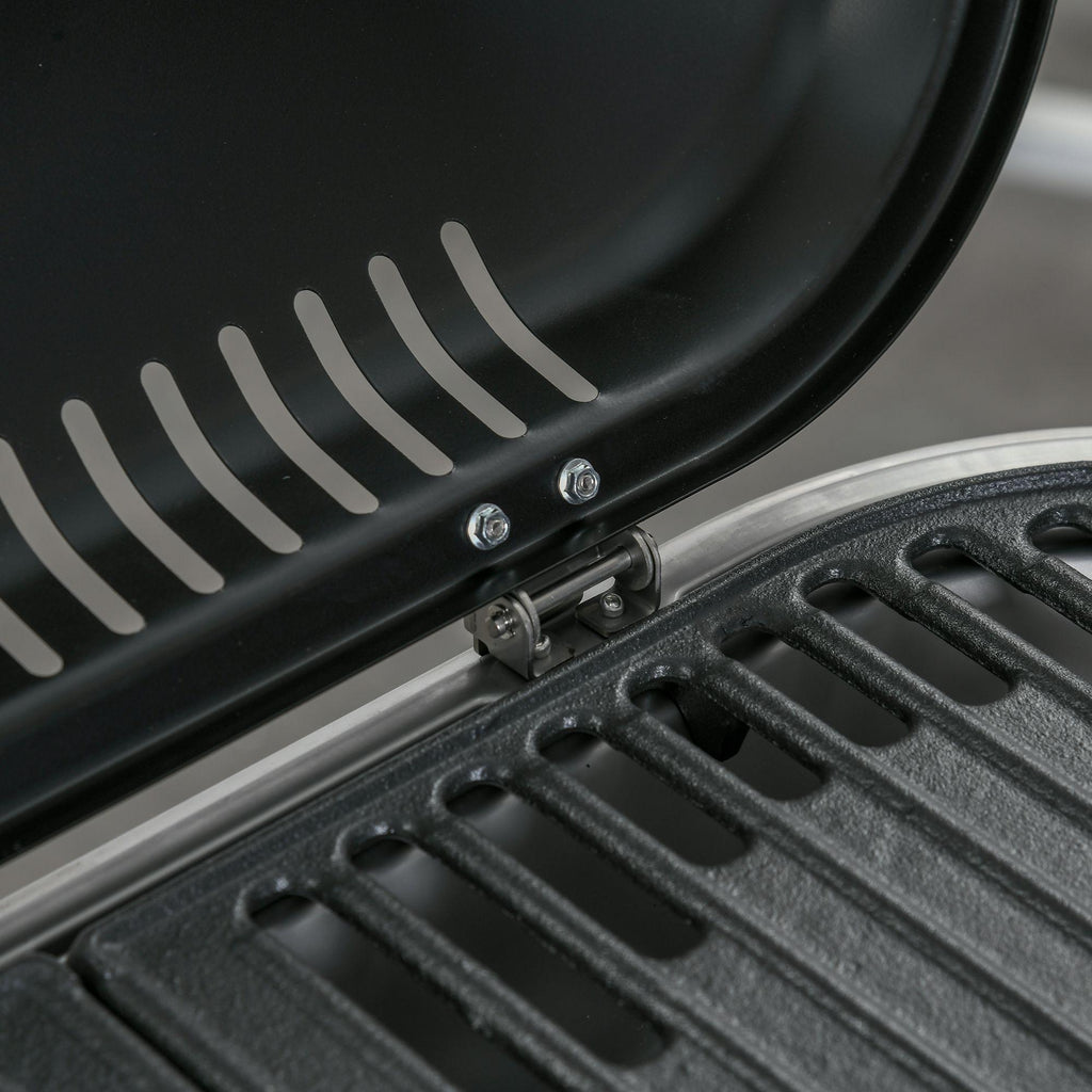 Beeindrucken Sie alle mit diesem Gasgrill. Die beiden Brenner können separat verwendet werden, um Speisen bei unterschiedlichen Temperaturen zu grillen, und dank des Thermometers auf dem Deckel haben Sie den Garzustand im Auge. Seitliche Ablagen und eine Netztasche am Boden helfen Ihnen, Soßen, Tabletts und Teller immer griffbereit zu haben. Klappen Sie den Grill nach dem Grillen zusammen und verstauen Sie ihn, wo immer Sie möchten: Er nimmt nur wenig Platz ein.