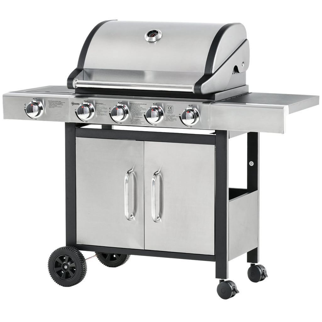 LPG-Gasgrill 4 Brenner 3kW mit Seitenbrenner aus Stahl