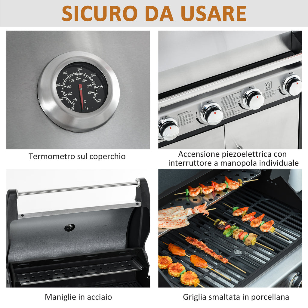 - SICHER IN DER ANWENDUNG: Keine Verbrennungsgefahr dank Edelstahlgriffen, die nicht heiß werden. Der Deckel hat ein Thermometer, mit dem Sie die Temperatur während des Garens leicht überprüfen können. Die Zündung der Brenner erfolgt mit einem piezoelektrischen System.