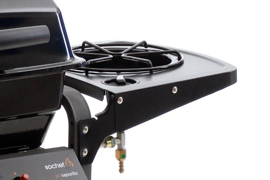 - Seitenbrenner (2,8 kW) und klappbare Seitenablage.