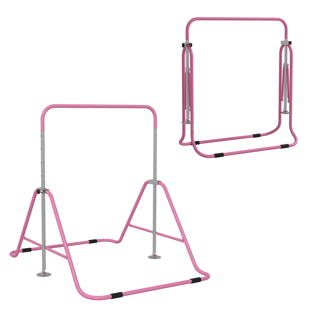 Barra Trazioni per Bambini Pieghevole Altezza Regolabile 88-128 cm in Acciaio Rosa