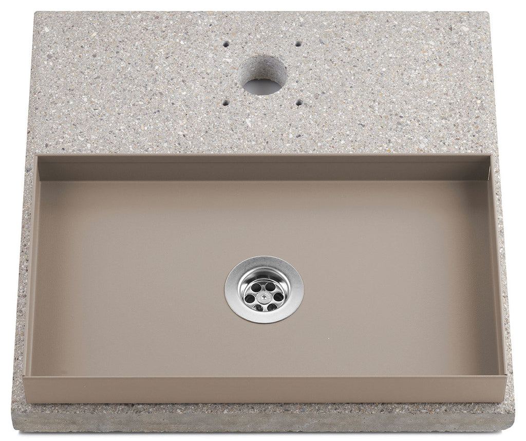 Zementsplittbasis komplett mit lackiertem Metallbehälter zum Einfüllen von Kieselsteinen (nicht im Lieferumfang enthalten).